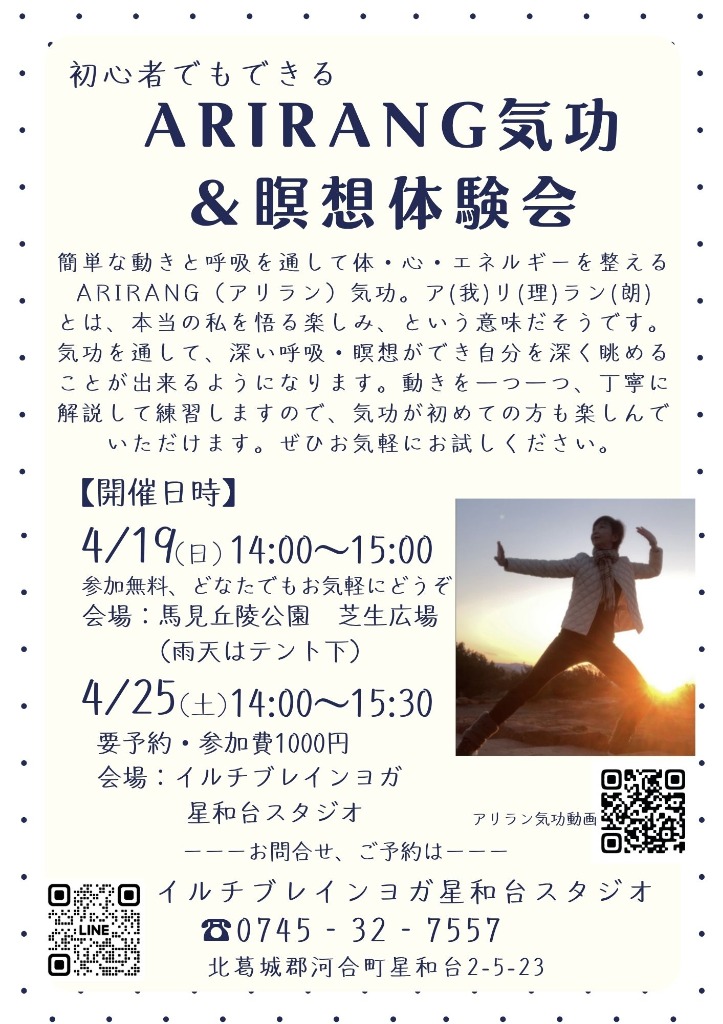 14:00~は、どなたでもできるアリラン気功&瞑想体験会