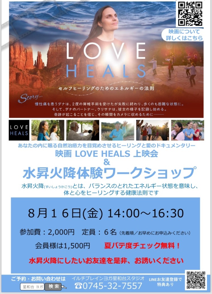8月16日(金)14:00~16:30 は、ドキュメンタリー映画『Love Heals』上映会を