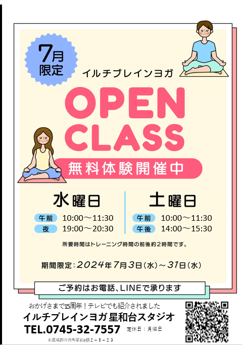 (特に午前のクラスは人気なので、ご希望に添えない場合がございます。)