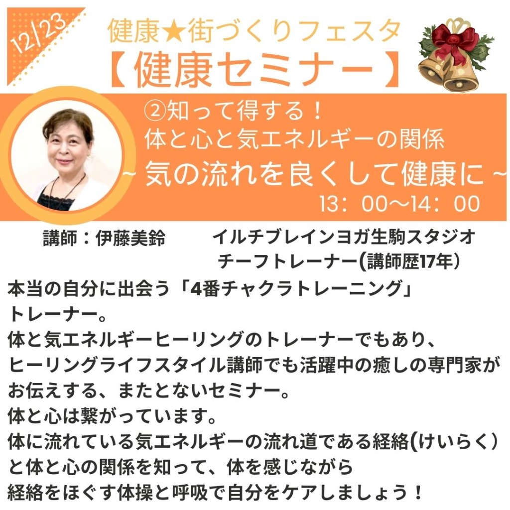 健康★街づくりフェスタセミナー②知って得する!体と心と気エネルギーの関係~気の流れをよくして健康に~