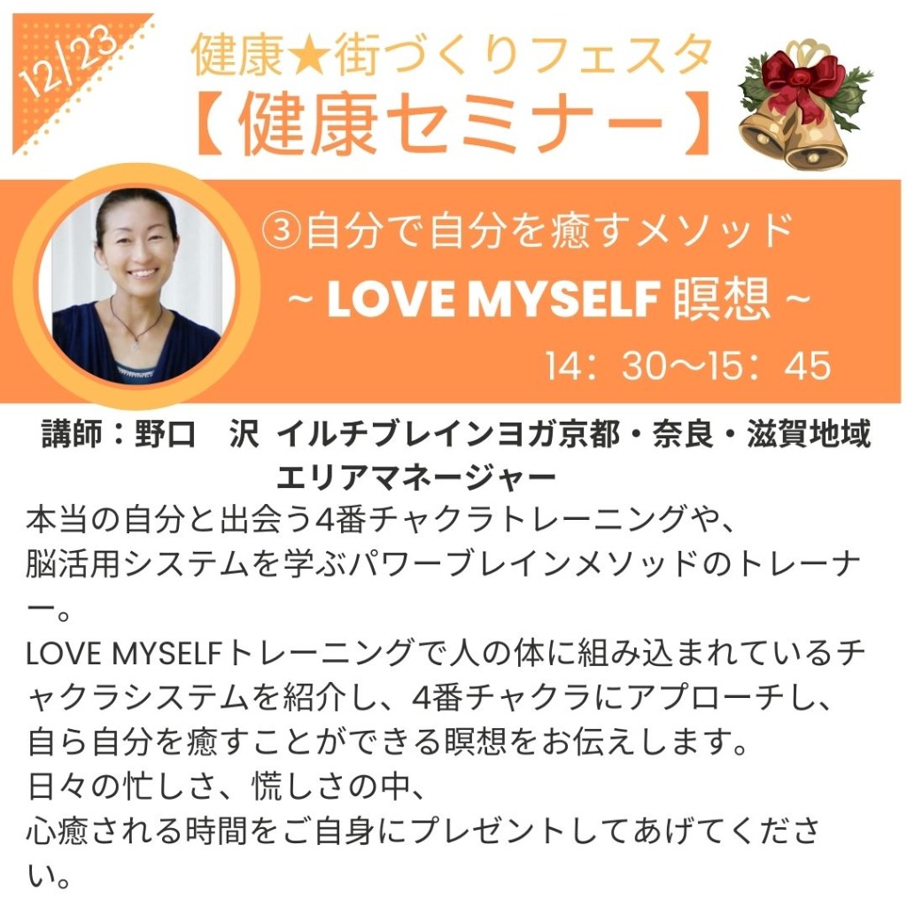 健康★街づくりフェスタセミナー③自分で自分を癒すメソッド~Love Myself瞑想~