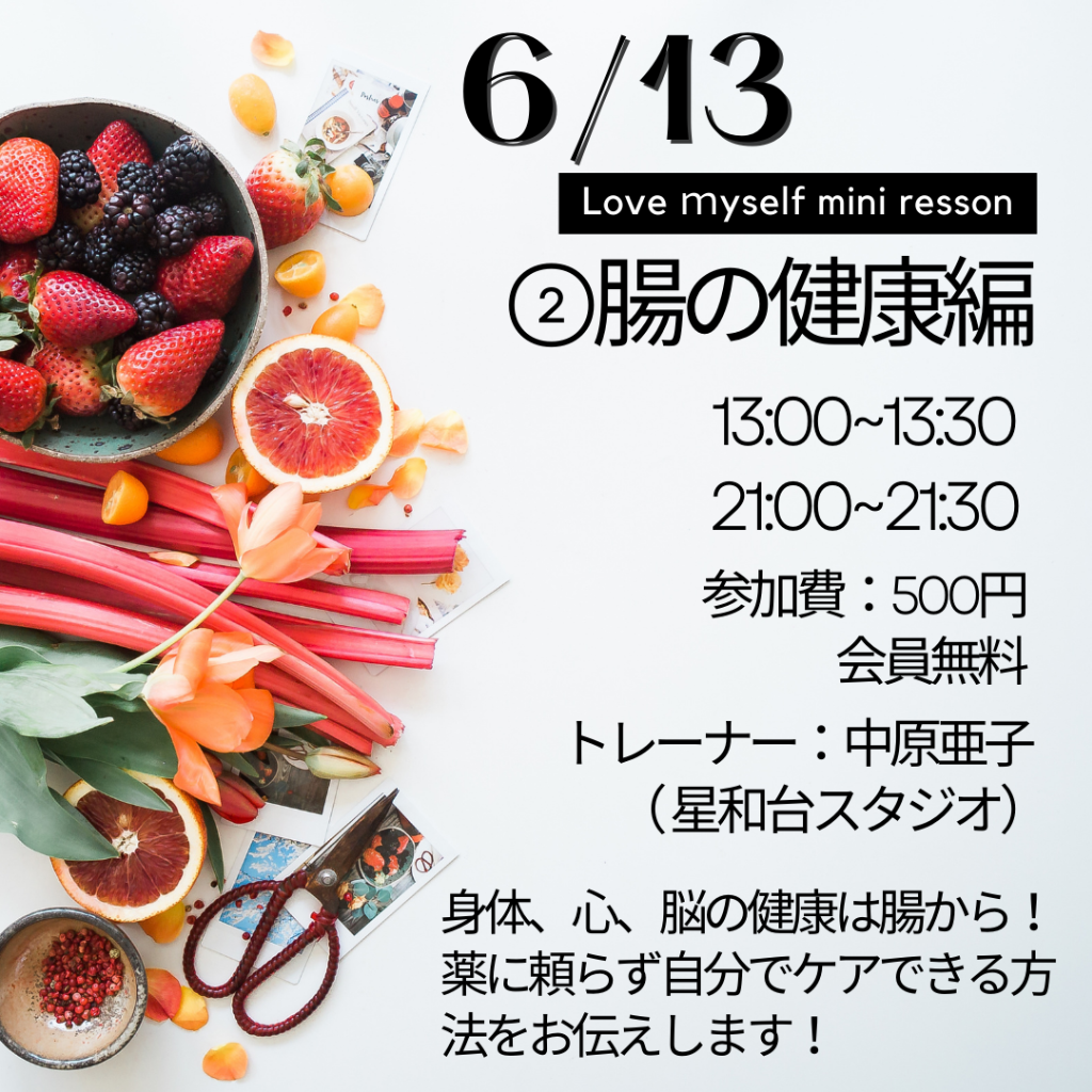②腸の健康編:6月13日(火)13:00~13:30 21:00~21:30